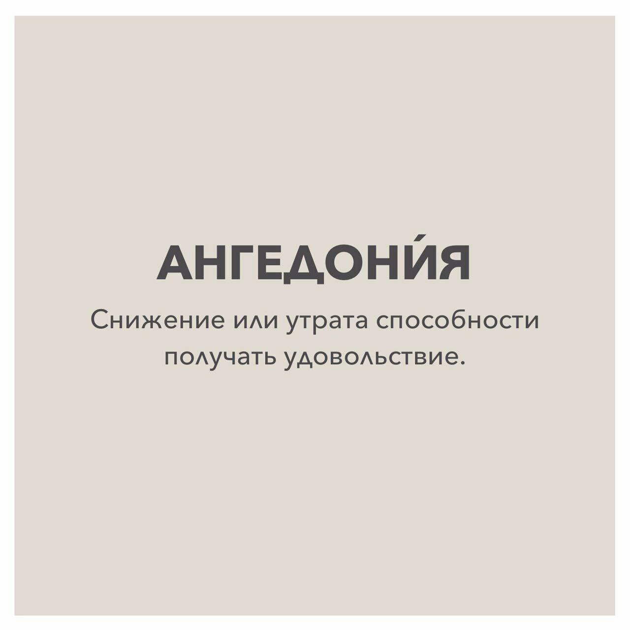 Ангедония (удаление на букву «И») – это снижение или полная потеря способности получать удовольствие. Человек, погрузившийся в данное состояние, больше не может наслаждаться вещами, раньше доставлявшими ему удовольствие. Он теряет даже стремление к наслаждению, поэтому ведёт себя пассивно и не пытается исправить ситуацию. Он теряет интерес к спорту, музыке, вкусной еде, хобби, общению, а в тяжелых случаях – даже к сексу.