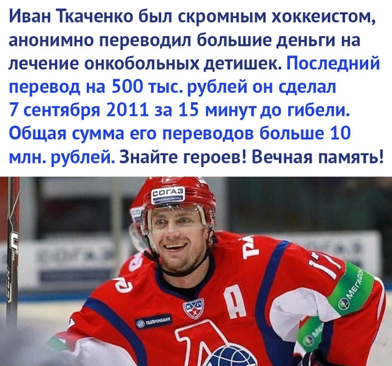 После гибели хоккеиста в авиакатастрофе выяснилось, что он, не раскрывая своего имени, помогал фонду АдВита, оказывая крупную материальную помощь детям с тяжёлыми заболеваниями. В частности, последний платёж в сумме 500 000 рублей в адрес девочки, страдающей острым лимфобластным лейкозом, Иван сделал в день своей трагической гибели. Общая сумма переведённых средств на момент гибели составила 9 996 300 рублей. При жизни об этом факте не было известно. В 2011 году награждён медалью Уполномоченного по правам человека РФ «Спешите делать добро».